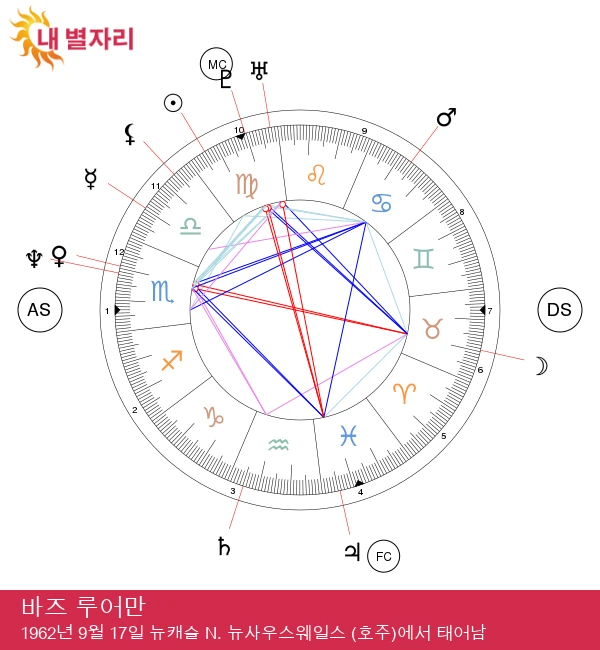 바즈 루어만은 금성이 전갈자리에 나와 있어 그가 싫어하는 환경에는 결코 적응하지 못합니다. 그는 비전통적인 길, 독특한 해결책, 화려한 선택을 사랑합니다. 그의 쾌락은 깊은 본능에서 우러나며, 열정이 그 성장의 원동력입니다. 그의 라이프스타일은 주변 사람들에게 영향을 미치고자 하는 욕망을 반영합니다. 자신감과 세계에 대한 지속적인 의구심을 균형 있게 유지하며, 그는 기회를 포착하기 위한 날카로운 통찰력과 직관적인 자질을 발전시킵니다. 바즈는 자신의 강점과 번영에 필요한 조건을 완벽하게 인지하고 있습니다.